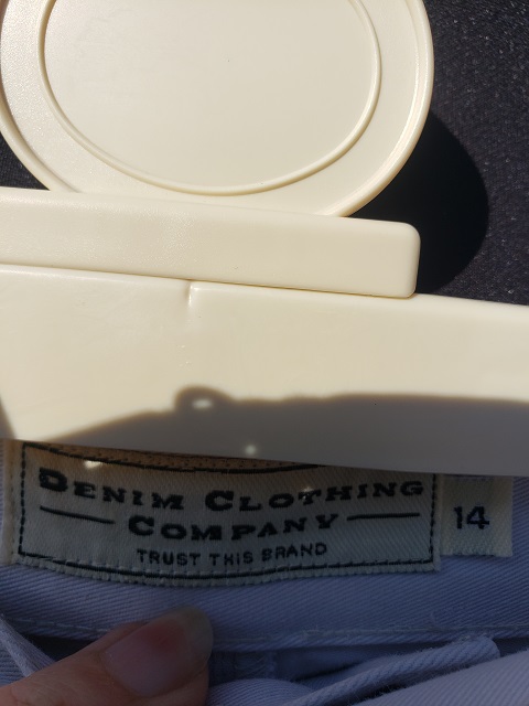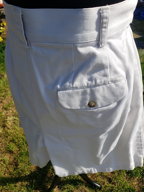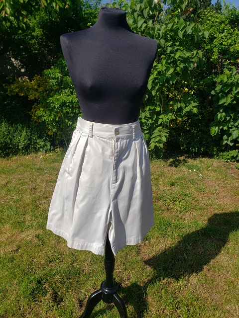 Pleated Shorts – Light Neutral with Buttoned Back Denim Clothing Company Pocket, Size 14