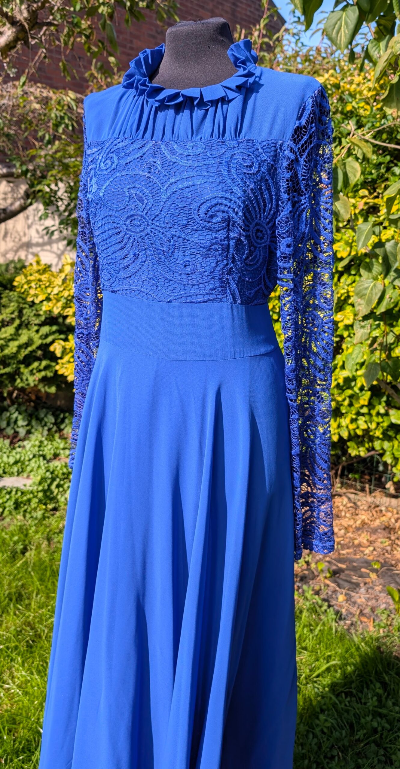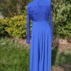 Fun pleated high neckline full length dress.