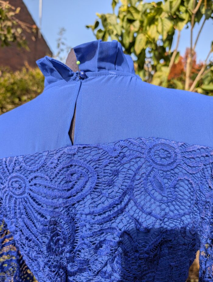 Long lace sleeve with flattering waist band side zip so back sits flat.