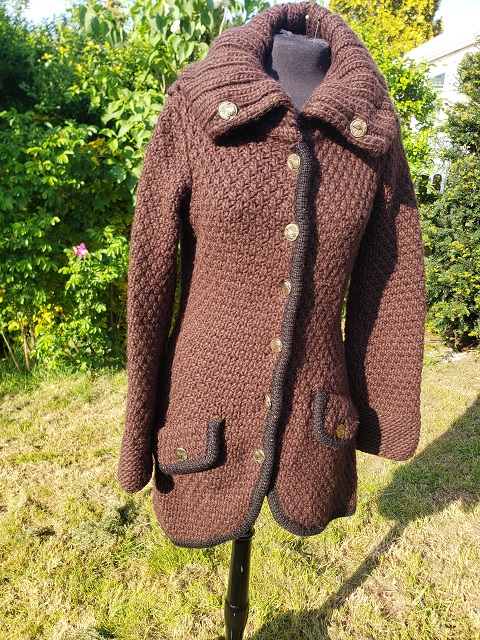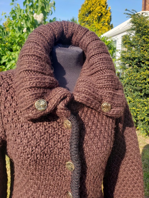 Miss Sixty Knitted Cardigan – Textured Brown with Gold Button Detailing