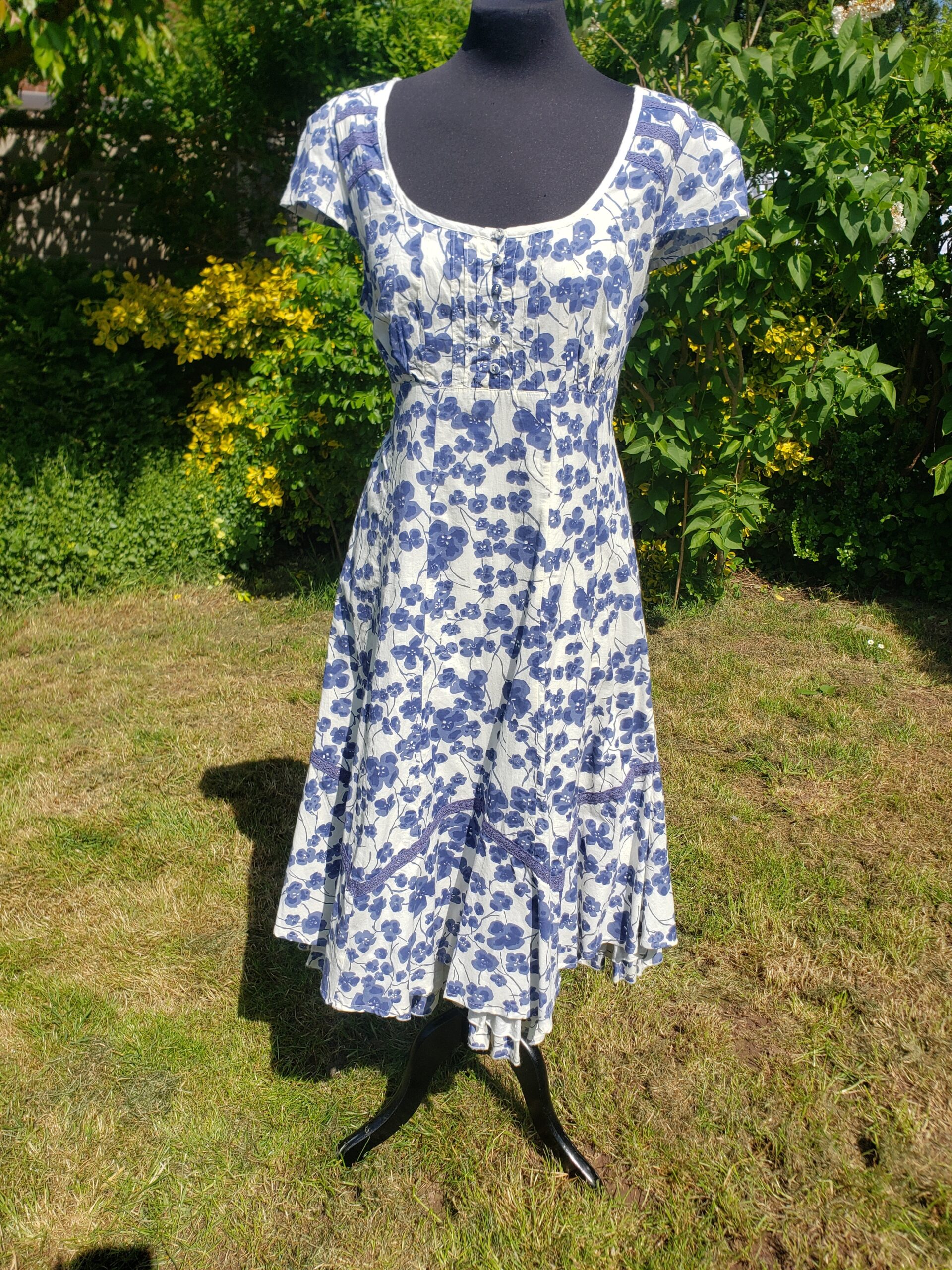 Per Una Summer Dress – Blue Floral on White Cotton Blend