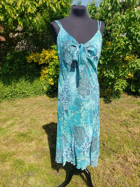 Teal Per Una adjustable spaghetti-strap Dress – Bow Detail with Floral & Paisley Print